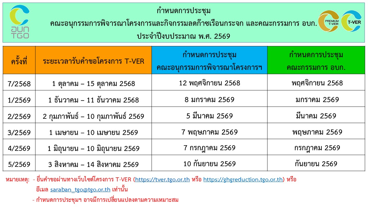 กำหนดการประชุม คณะอนุกรรมการพิจารณาโครงการ T-VER และคณะกรรมการ อบก. ประจำปีงบประมาณ พ.ศ. 2569